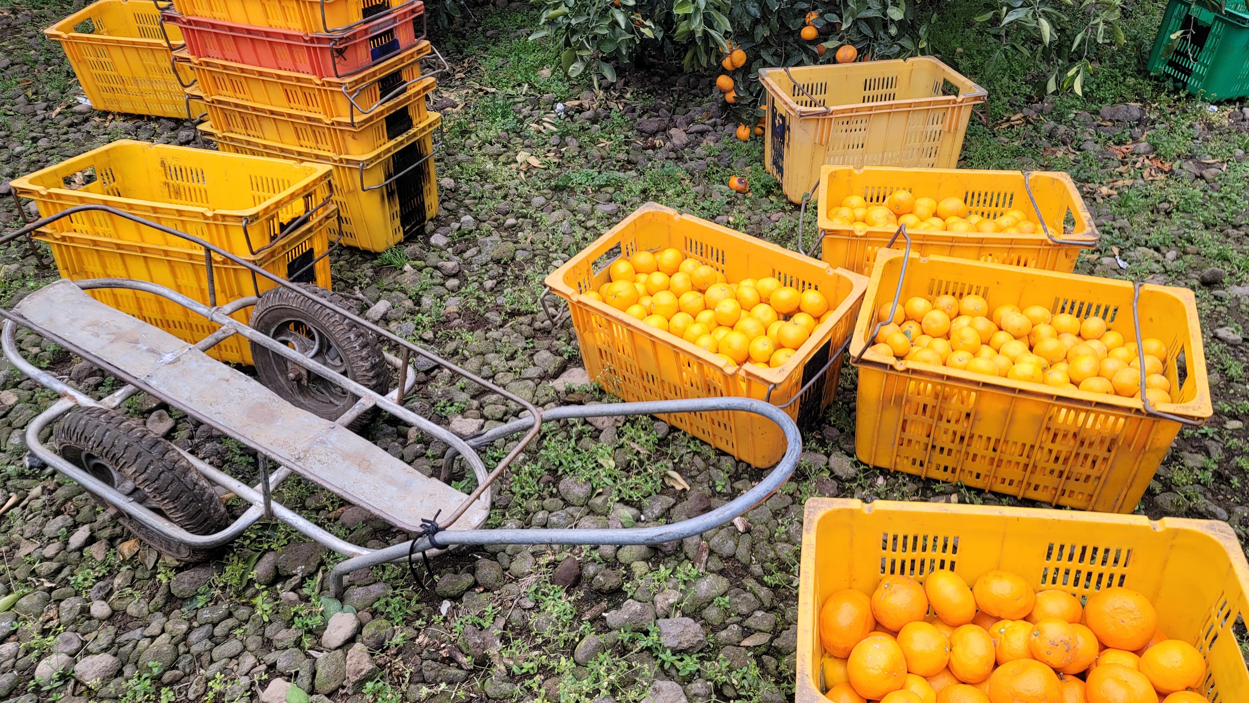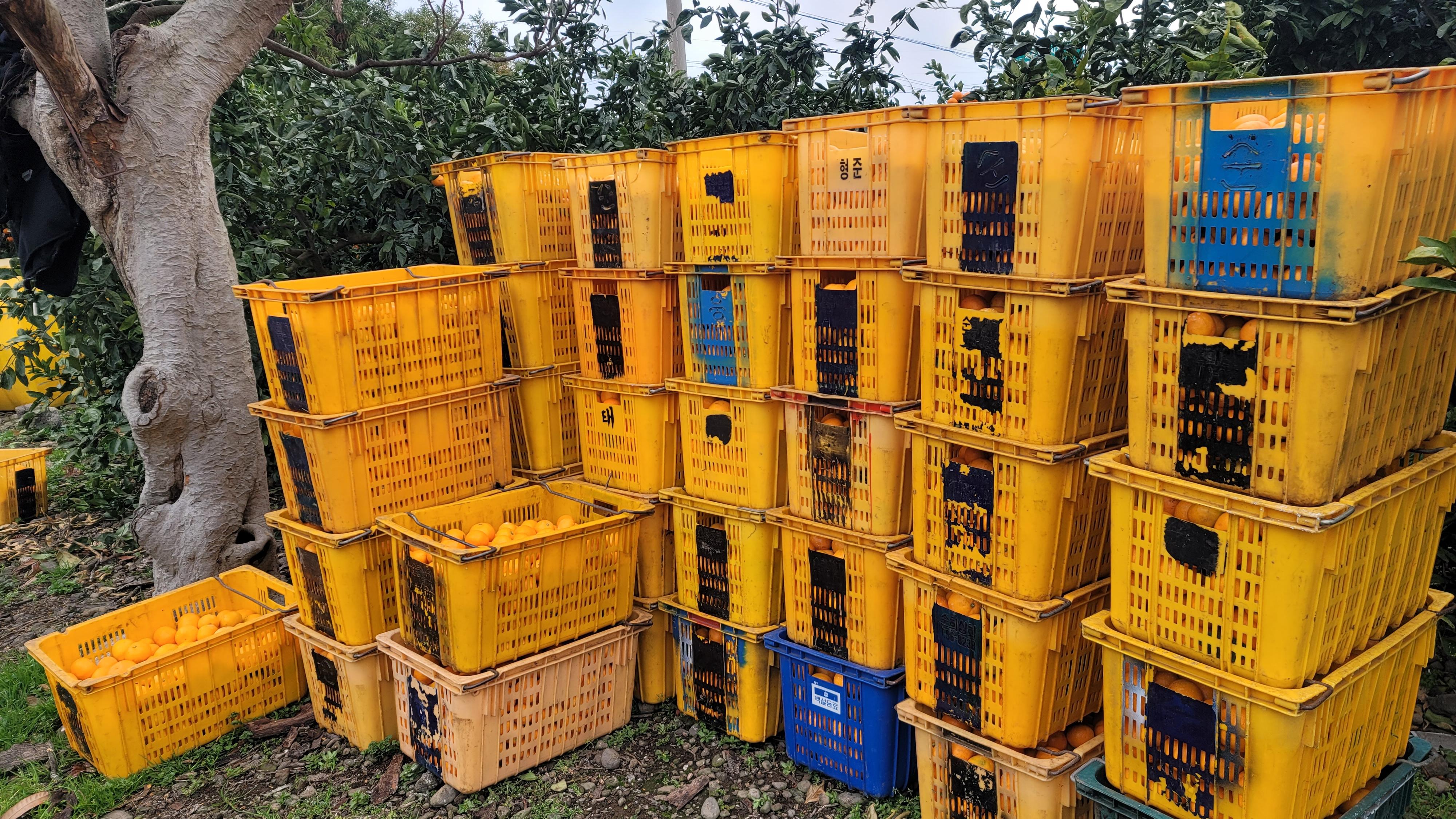 어찌보면 이렇게 하는 작업이 귤나르는 사람은 조금 힘들지만 중간에 "강오"에서 콘테나로 옮겨담는 작업이 빠지기 때문에 훨씬 작업속도를 빠르게 할 수 있는 실리적인 방법인거 같다.