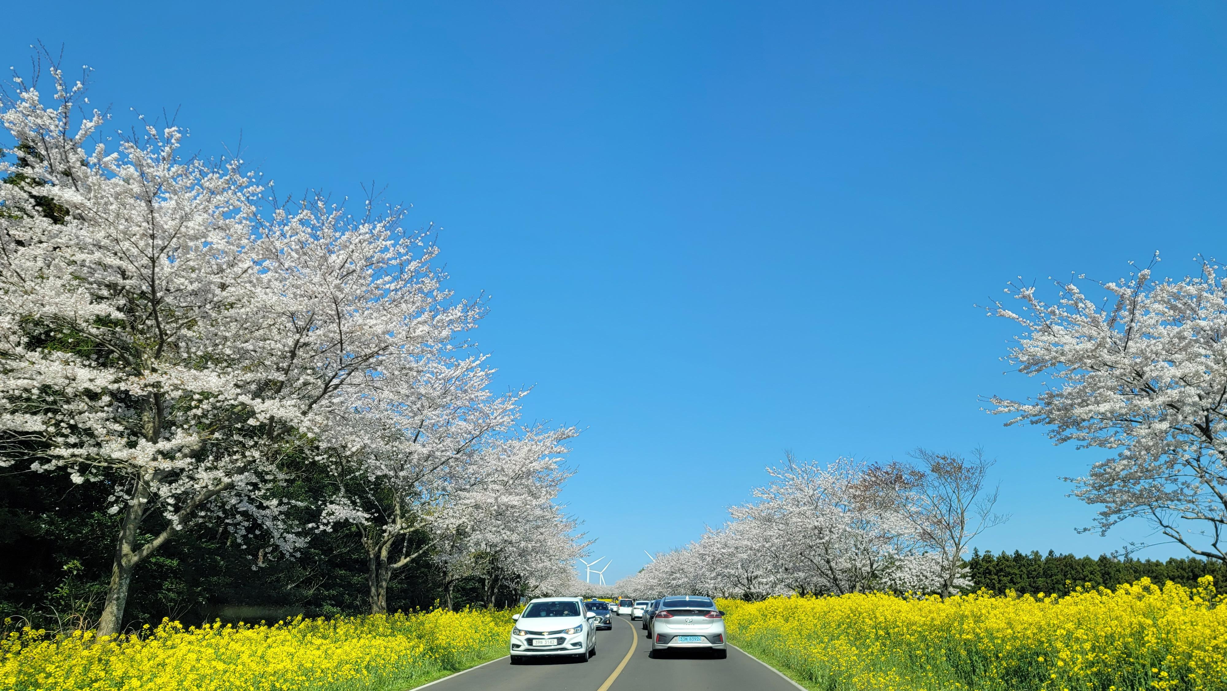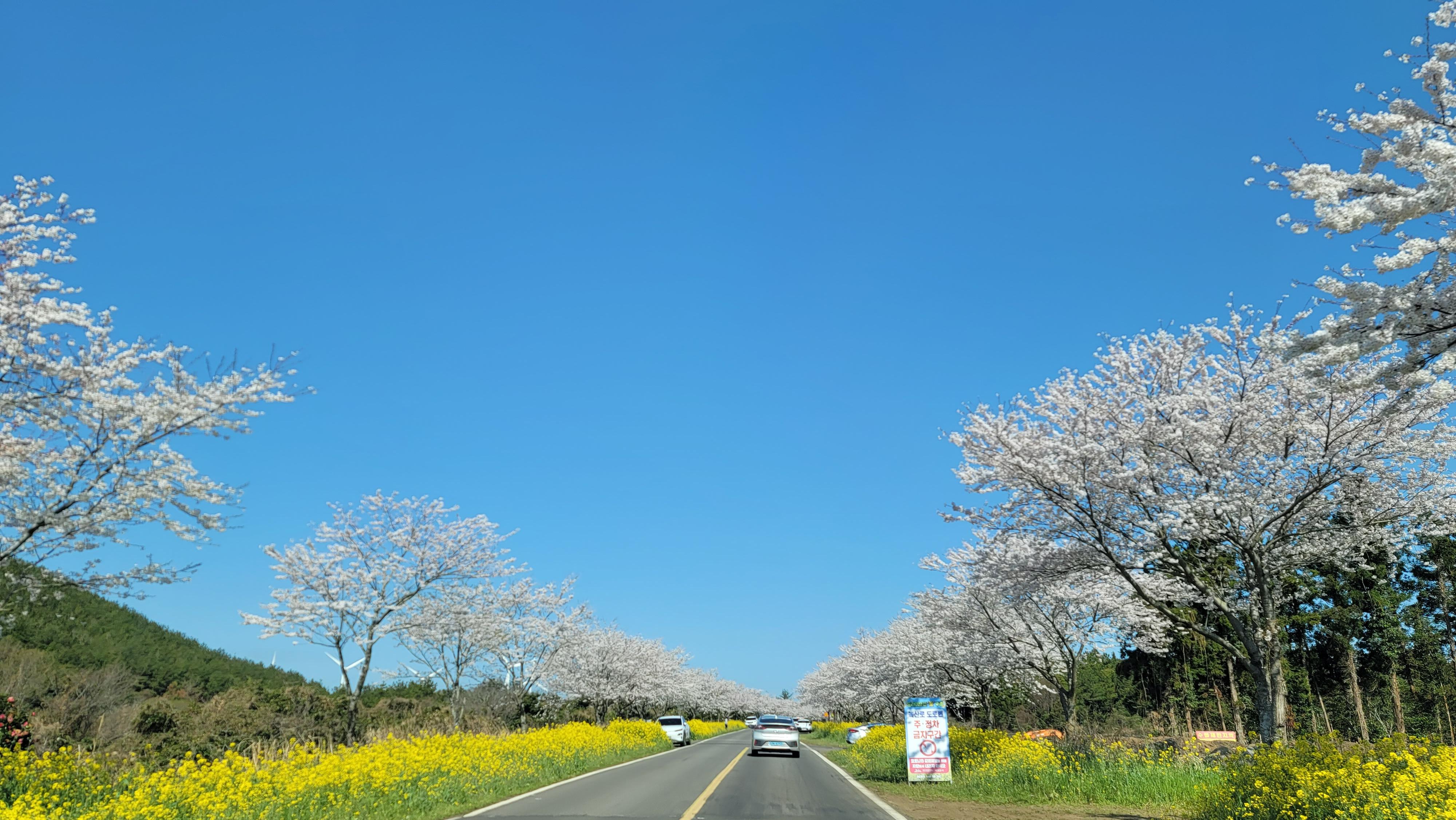 제주도 벚꽃은 정말 서울의 윤중로보다도 훨씬 예쁘고 길게 뻗어 있네요.