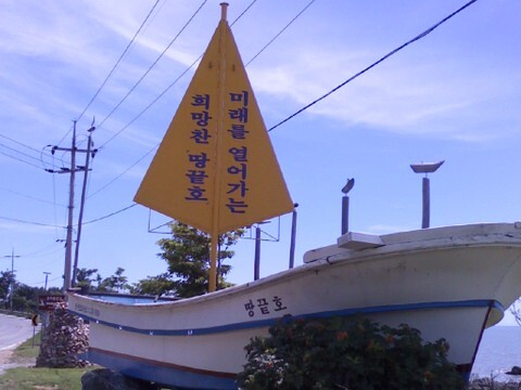 땅끝호라는 배가 육지위에 서있다..